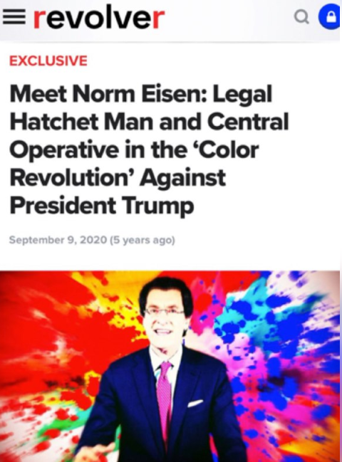 ノーム・アイゼン氏:トランプ大統領に対する「カラー革命」の中心人物であり、法的にハチェットマン(※人員整理、リストラ、悪評の立つ業務など、憎まれ役(汚れ役)を引き受けて実行する人)である人物