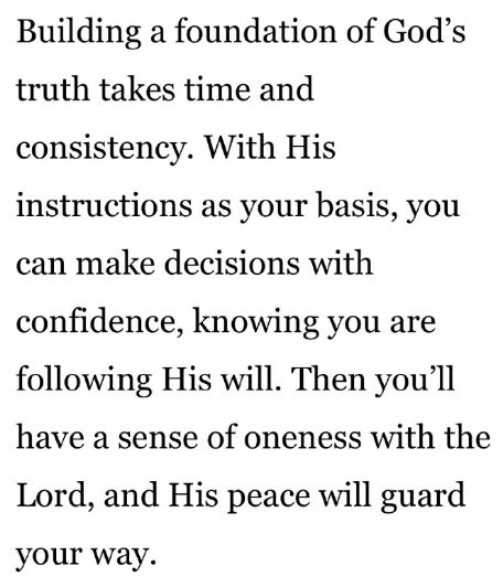 神の真理の基盤を築くには、時間と一貫性が必要です。神の指示を基盤とすることで、あなたは神の御心に従っているという確信を持って、自信を持って決断を下すことができます。そうすれば、あなたは主との一体感を抱き、神の平安があなたの道を守ってくれるでしょう。