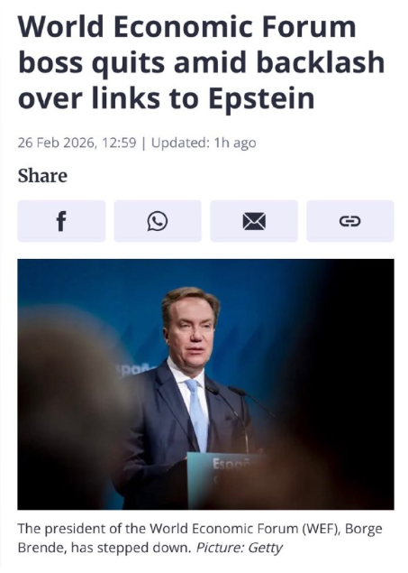 故ジェフリー・エプスタインとのつながりが明らかになり、厳しい監視に直面していたボーレ・ブレンデ氏が、世界経済フォーラムの会長兼CEOを辞任する。「同僚、パートナー、そして関係者との素晴らしい協力に感謝しており、今こそフォーラムが邪魔されることなく重要な活動を継続する適切な時だと信じている」とブレンデ氏は声明で述べた。