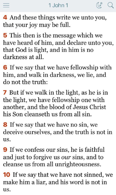 7 しかし、神が光の中におられるように、私たちも光の中を歩んでいるなら、私たちは互いに交わりを持っており、神の御子イエス・キリストの血はすべての罪から私たちをきよめます。