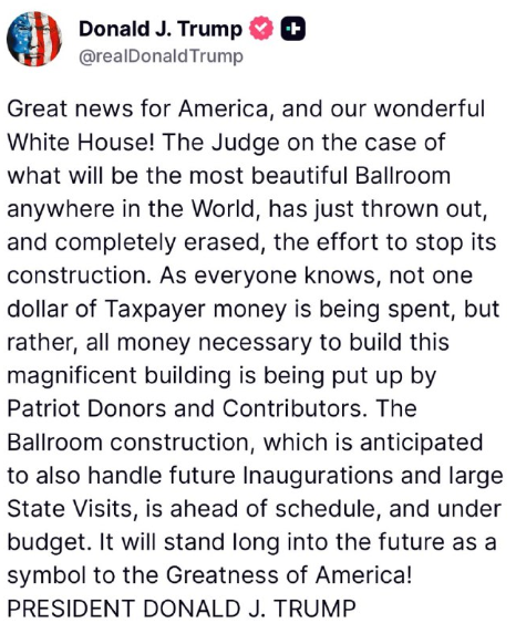 ボールルームの建設をめぐる裁判を担当する判事が、