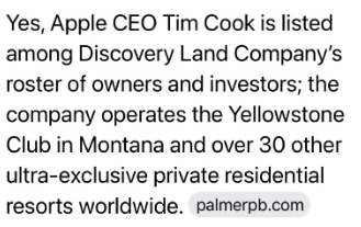 オーナー兼投資家リストに名を連ねています。同社は、モンタナ州のイエローストーン・クラブをはじめ、