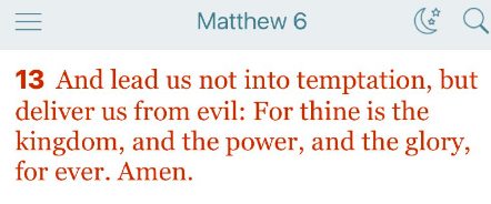 「私たちを誘惑に陥らせないでください。悪からお救いください」というフレーズは、聖書の欽定訳聖書(KJV)の主の祈り、特にマタイによる福音書6章13節に記されている祈りの一部です。この祈りは、道徳的な試練や悪意ある影響からの導きと保護を求める嘆願です。