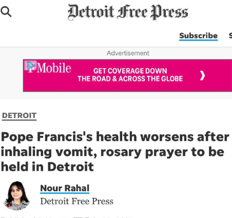 フランシスコ法王の健康状態が悪化、デトロイトでロザリオの祈りが行われる