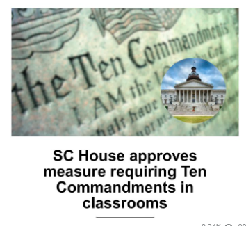 サウスカロライナ州議会、教室での十戒の遵守を義務付ける法案を承認