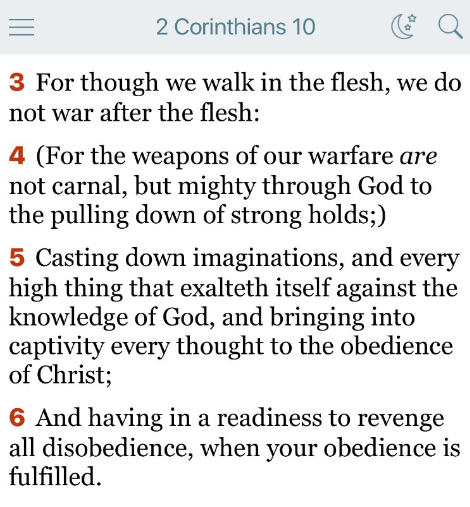 4 (私たちの戦いの武器は肉のものではなく、神によって力強く、要塞さえも打ち倒すほどのものです。)