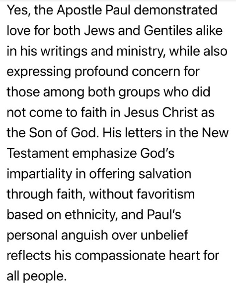 はい、使徒パウロは、その著作と宣教活動において、ユダヤ人と異邦人の両方に対する愛を示しました。同時に、両グループの中でイエス・キリストを神の子として信じなかった人々に対しても、深い懸念を表明しました。新約聖書に収められた彼の書簡は、神が人種による差別なく、信仰を通して救いを与えるという公平さを強調しています。パウロ自身の不信仰に対する苦悩は、すべての人々に対する彼の深い慈しみの心を表しています。
