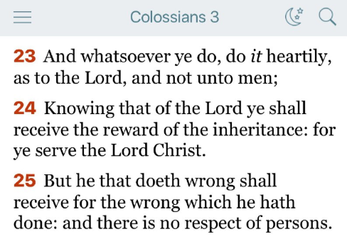 23節 あなたがたは、何をするにも、人に対してではなく、主に対してするように、心を尽くして行いなさい。