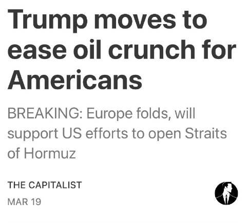 速報:欧州が折れ、ホルムズ海峡開通に向けた米国の取り組みを支持へ