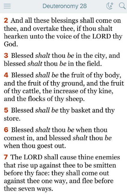 これらすべての祝福があなたに臨み、あなたに追いつくであろう。