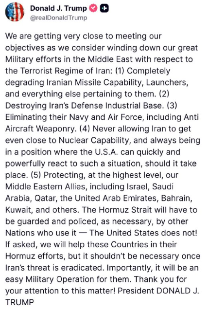 イランのテロ政権に対する中東での大規模な軍事作戦の縮小を検討するにあたり、我々は目標達成に非常に近づいています。