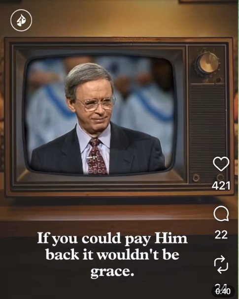 もし彼に返済できるなら、それは恵みではありません。恵みとは、神からの、受けるに値しない、ふさわしくない贈り物です。