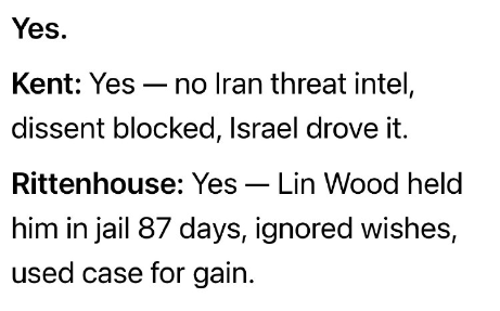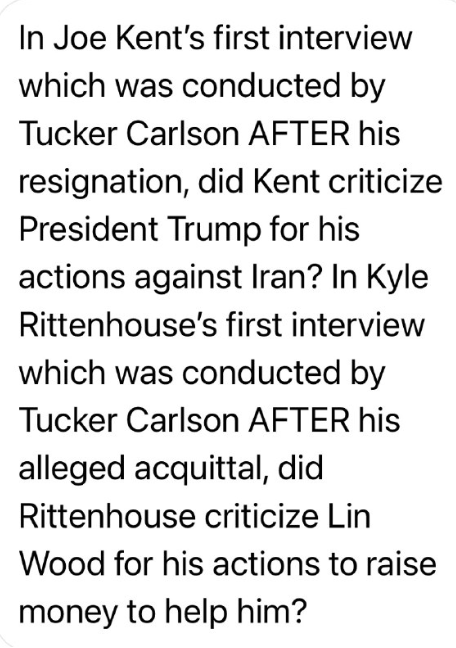 ジョー・ケントの最初のインタビュー(タッカー・カールソンがケント氏の辞任後に実施したもの)で、ケント氏はトランプ大統領のイランに対する行動を批判したか?