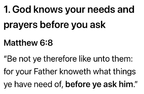 - 神はあなたが求める前からあなたの必要と祈りを知っておられます