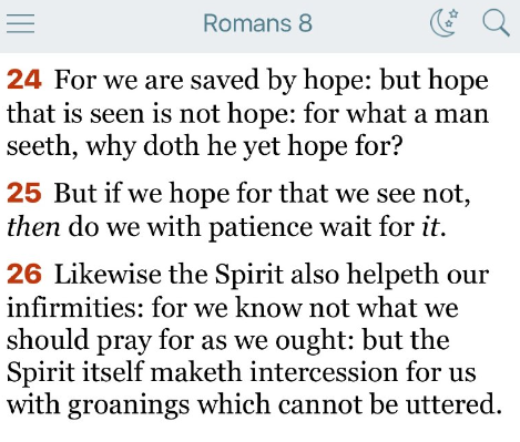 しかし、御霊ご自身が、言い表せないうめきをもって、私たちのためにとりなしてくださるのです。