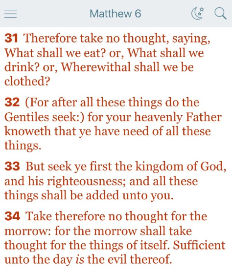 34 だから、明日のことを思い煩ってはならない。明日のことは明日が思い煩うであろう。一日の苦労はその日だけで十分である。