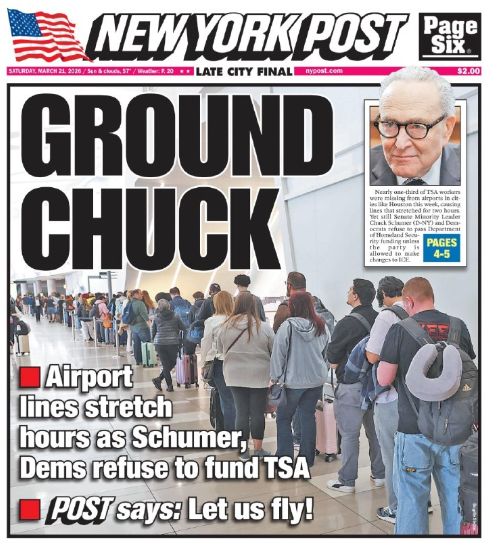 チャック・シューマー上院議員と民主党がTSA(米国運輸保安庁 )への予算拠出を拒否