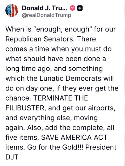 議事妨害を廃止し、空港をはじめとするあらゆるものを再び動かしましょう。