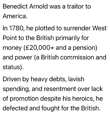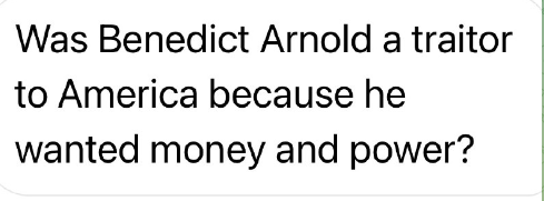 ベネディクト・アーノルドは、金と権力を欲したために、アメリカに対する裏切り者だったのだろうか?