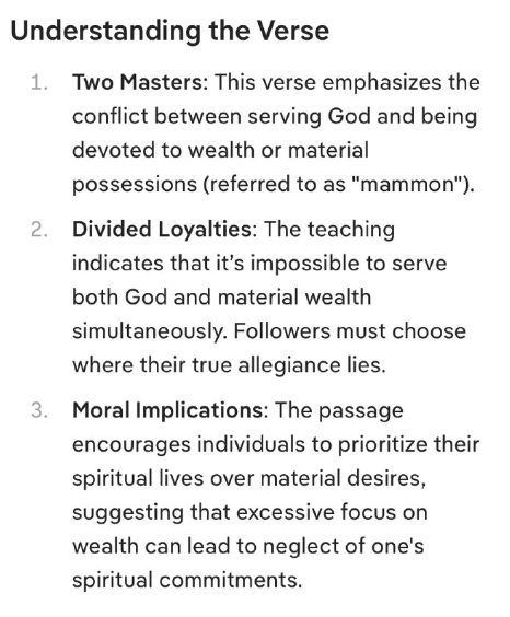 道徳的意味:この聖句は、物質的な欲望よりも
