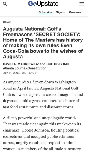 オーガスタ・ナショナル:ゴルフ界のフリーメイソン「秘密結社」