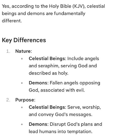 はい、聖書(欽定訳)によれば、天界の存在と悪魔は根本的に
