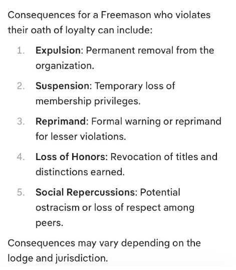 フリーメイソン会員が忠誠の誓いを破った場合、以下の措置が取られる可能性があります。
