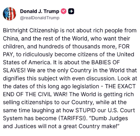 出生地主義による市民権付与は、中国をはじめとする世界中の富裕層が、何十万人もの子供たちを、金銭と引き換えに、馬鹿げたことにアメリカ合衆国の市民にしようとすることではありません。