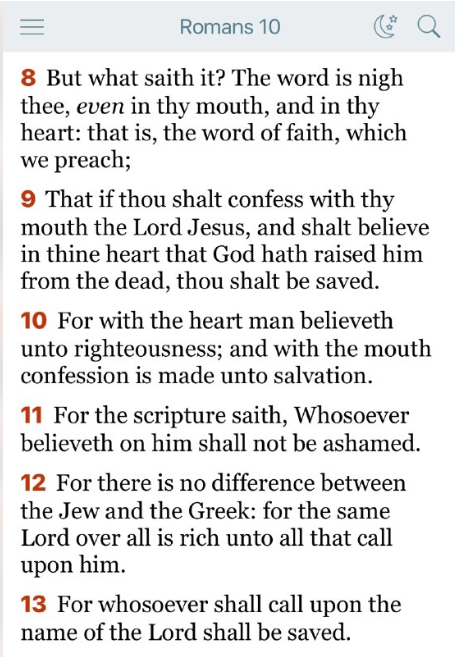 10 人は心で信じて義と認められ、口で告白して