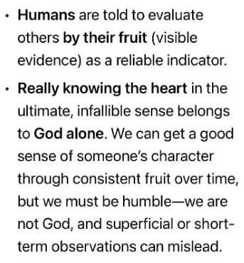 ・人の心を真に、究極的かつ絶対的に知ることは、神のみに属することです。私たちは、長年にわたる一貫した行いを通して、その人の性格をある程度把握することはできますが、謙虚でなければなりません。私たちは神ではなく、表面的な観察や短期的な観察は誤った判断につながる可能性があるからです。