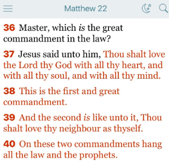 37 イエスは彼に言われた。「あなたは、心を尽くし、魂を尽くし、思いを尽くして、あなたの神である主を愛しなさい。」