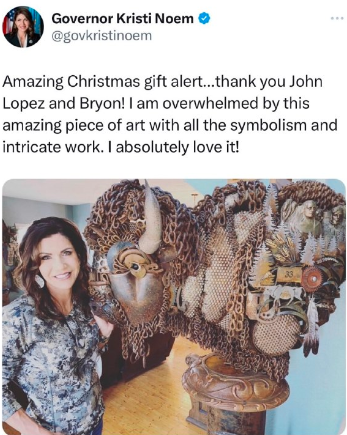 この画像は、アメリカの政治家クリスティ・ノーム(Kristi Noem)氏と、夫のバイロン・ノーム(Byron Noem)氏の結婚式の時の写真です。二人は1992年に結婚しており、この写真は2024年に結婚32周年を迎えた際に彼女のSNSなどで共有されました。彼女はサウスダコタ州知事を務めていることで知られています。