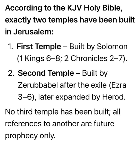 欽定訳聖書によれば、エルサレムには正確に二つの神殿が建てられました。