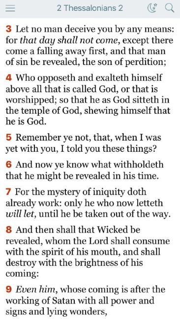 その日が来る前に、まず背教が起こり、そして、滅びの子である罪人、すなわち、あの人が現れなければなりません。