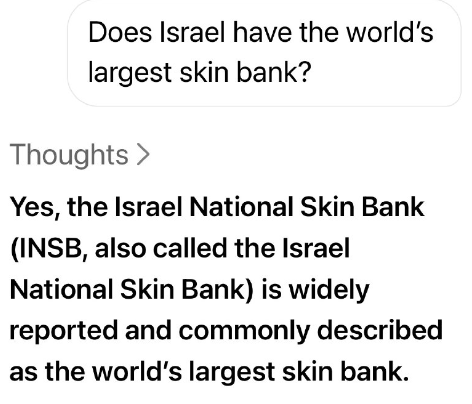 イスラエルには世界最大の皮膚バンクがあるのでしょうか?