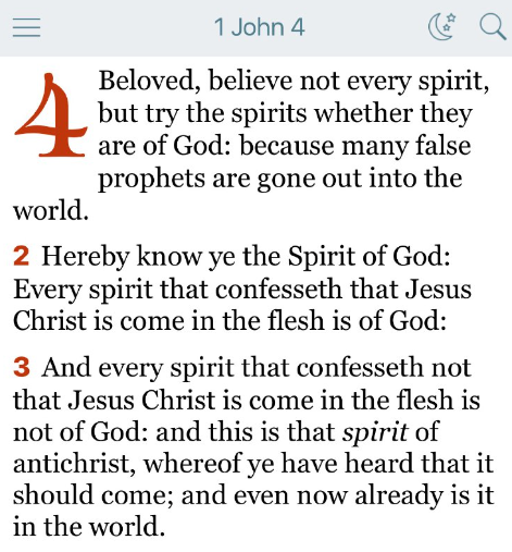 イエス・キリストが肉において来られたことを告白する霊はすべて神から出たものです。