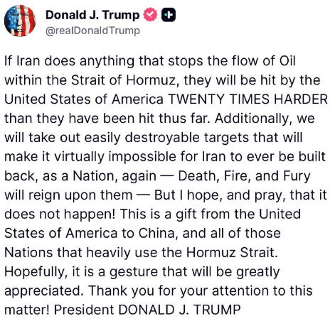 願い、祈っています!これは、中国、そしてホルムズ海峡を頻繁に利用するすべての国々への