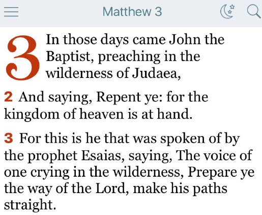 そのころ、バプテスマのヨハネが現れ、ユダヤの荒野で宣教して言った。