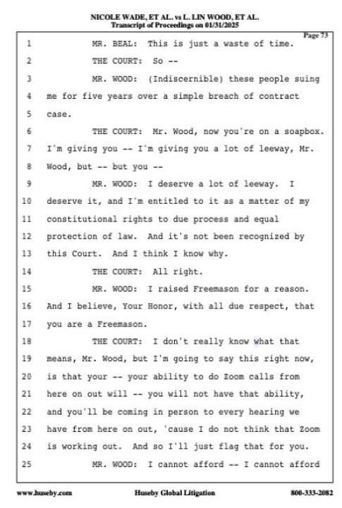 ウッド氏:私はかなりの裁量を与えられてしかるべきです。私はそれに値しますし、適正手続きと法の平等な保護を受けるという憲法上の権利に基づき、それを受ける権利があります。そして、この裁判所はそれを認めていません。そして、その理由は私には分かっていると思います。