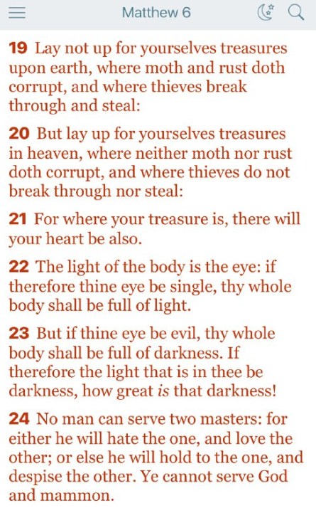 そこでは虫が食い、さびがつき、盗人が押し入って盗み取ります。