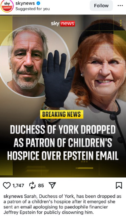 スカイニュース ヨーク公爵夫人サラは、小児ホスピスのパトロンから外された。