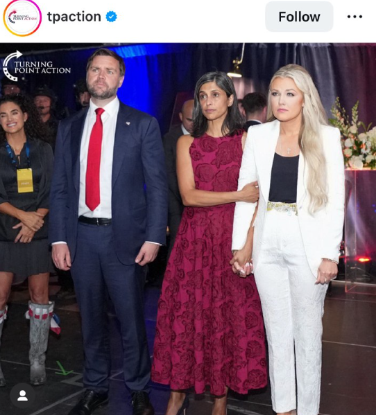 ※ヴァンス、”妻”ウシャ、チャーリー・カークの”妻”エリカ