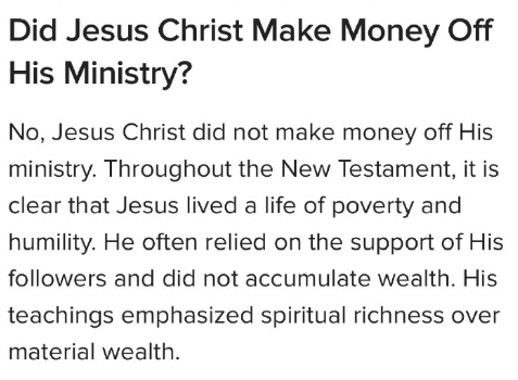 いいえ、イエス・キリストは宣教活動で金儲けをされたわけではありません。