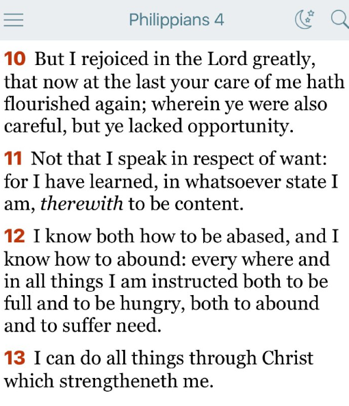 私はどんな境遇にあっても、それとともに満ち足りることを学んだからです。