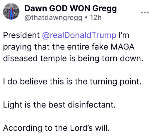 @realDonaldTrump大統領、偽MAGAの病んだ寺院全体が破壊されることを祈っています。