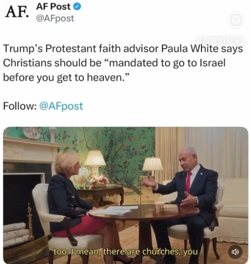 キリスト教徒は「天国に行く前にイスラエルに行くことを義務付けられるべきだ」と述べている。